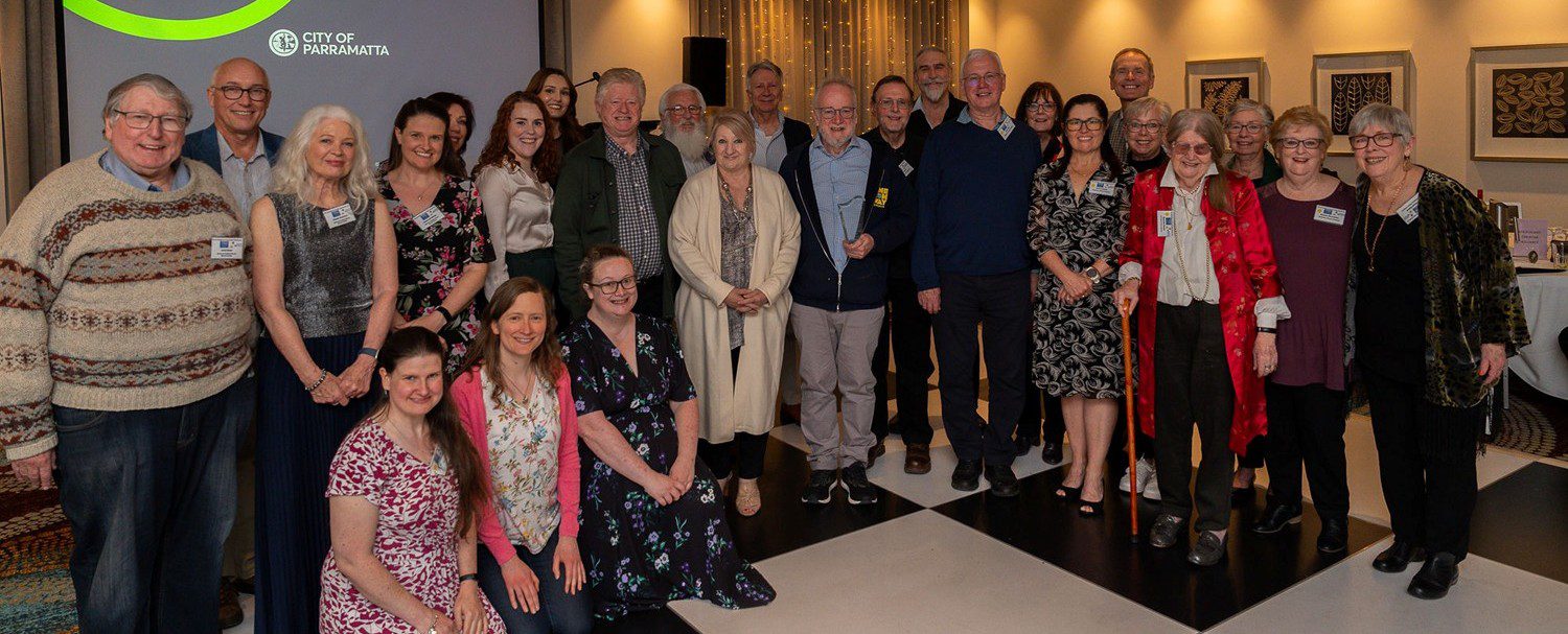 Neil Litchfield, surrounded by friends with whom he has made theatre as a director and performer since 1970, on the night of his induction.